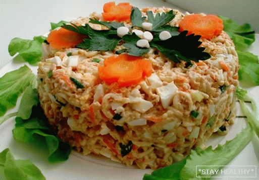 печенью трески и крабами majonéza. ale чтобы салат не получился